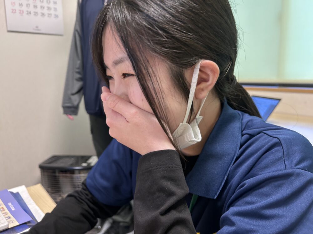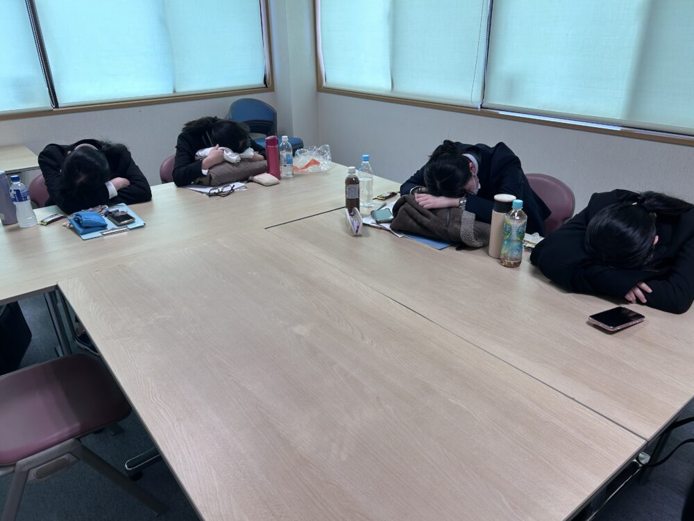 休憩時間中のひと時。実習生いわく「次の実習に向けて体力回復中だそうです(笑)」