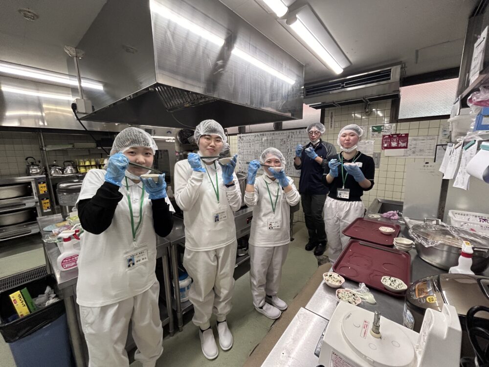 毎年この季節は、常磐大学様より実習生の受入をさせていただき、福祉施設の給食業務、栄養士業務について濃密でとても厳しい(!?)体験してもらっています😆