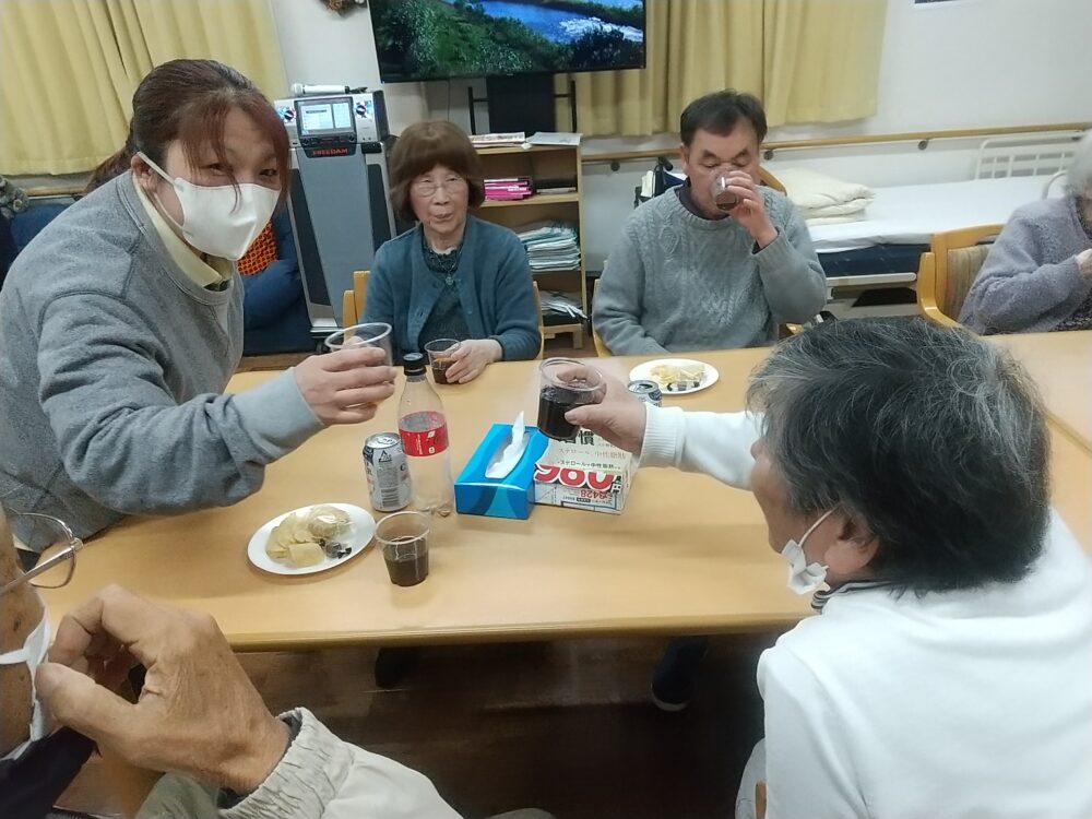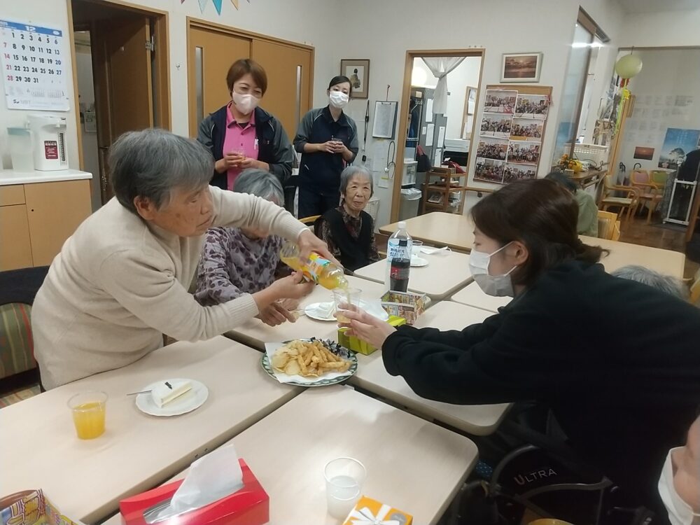 飲み物、お菓子、ケーキをみんなで食べながら、1年を振り返ったり、労ったり、ゲームをやったり・・・・・