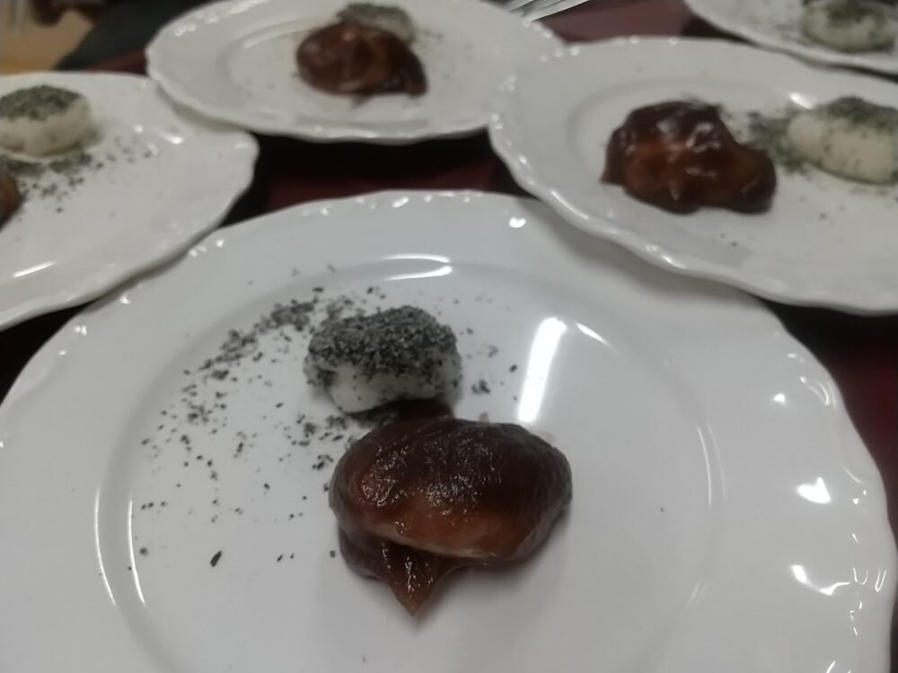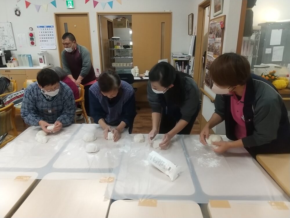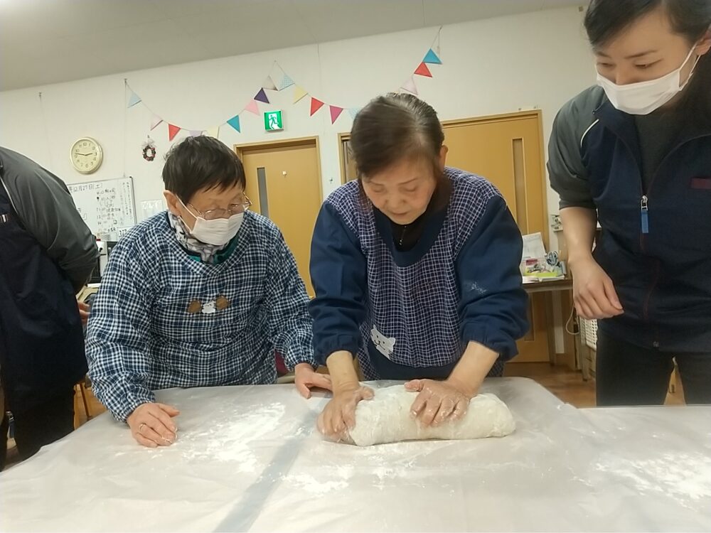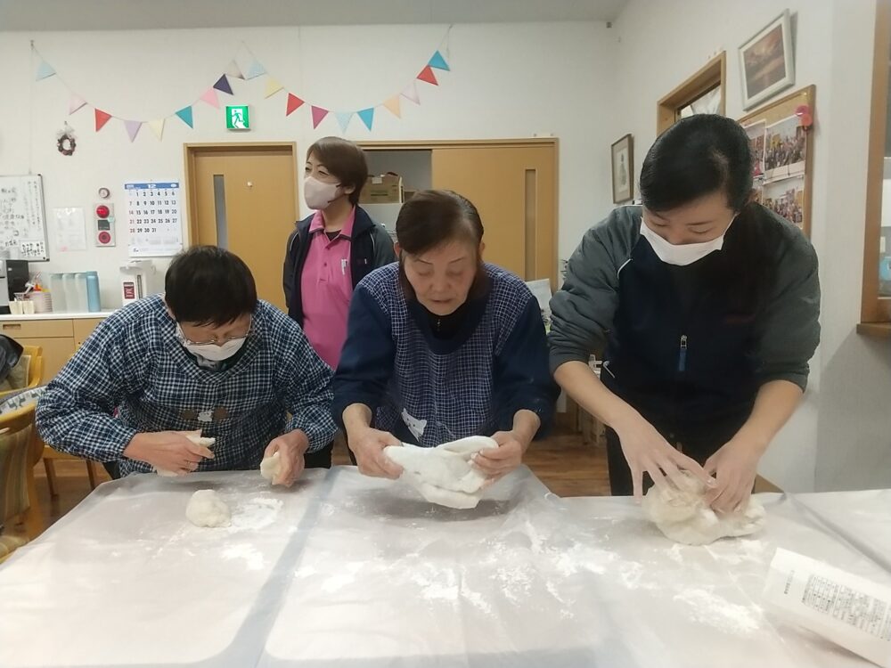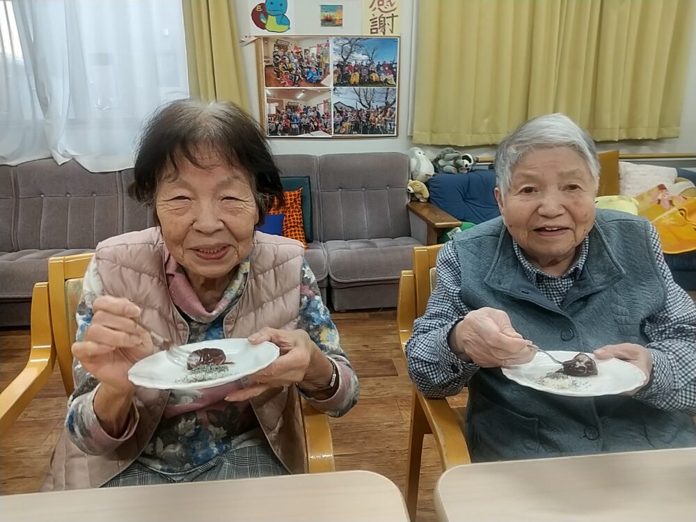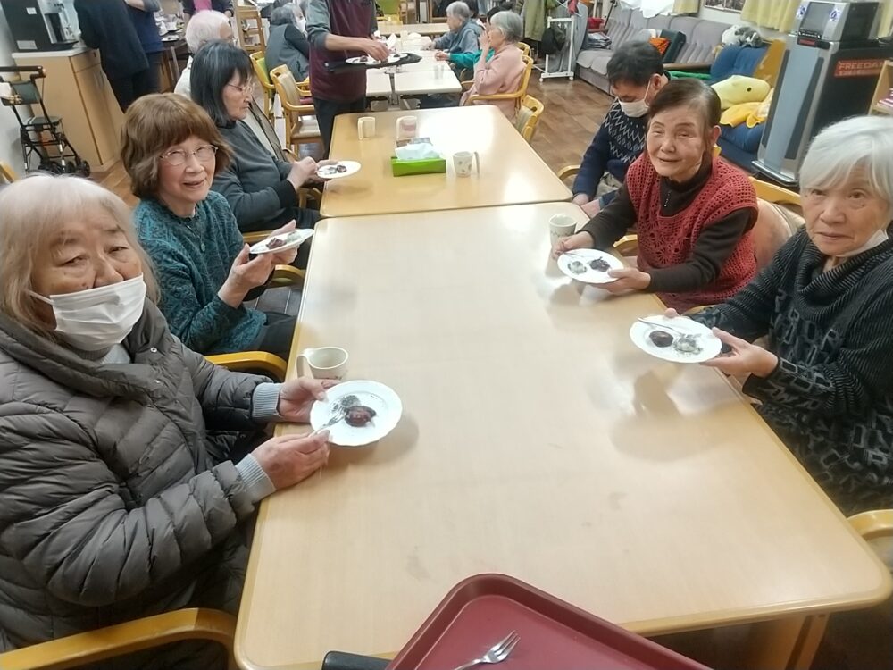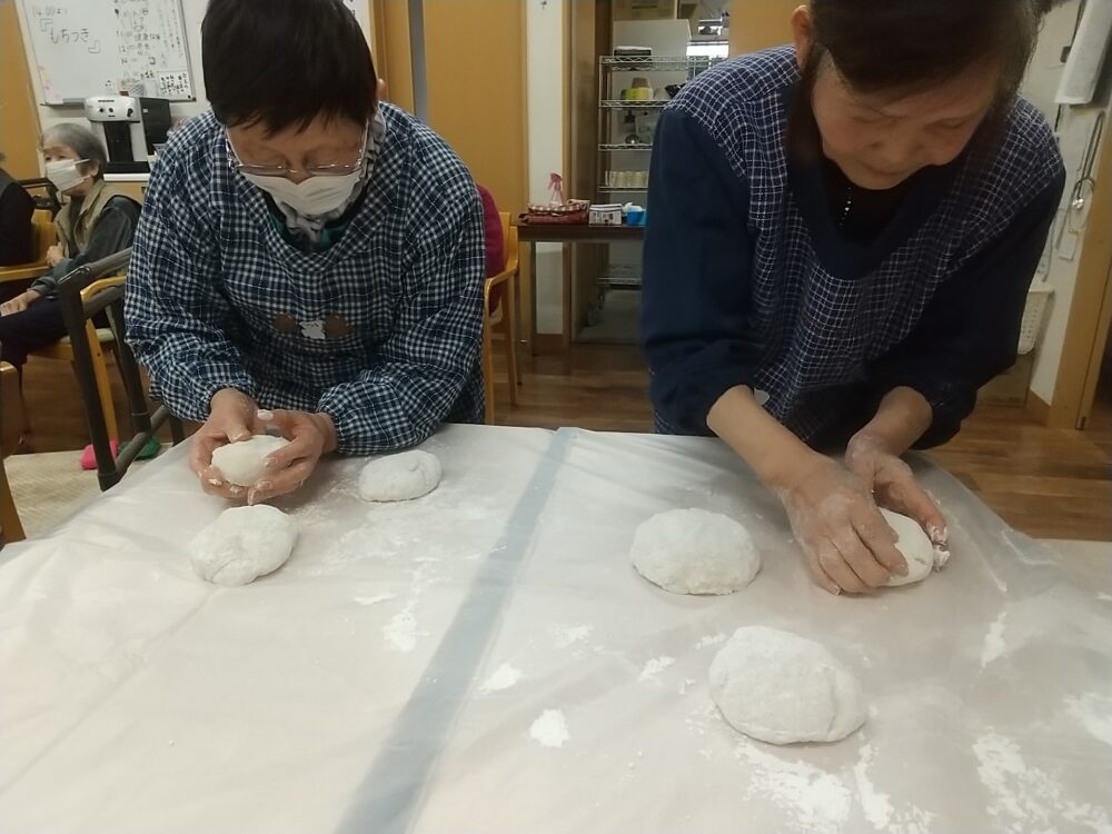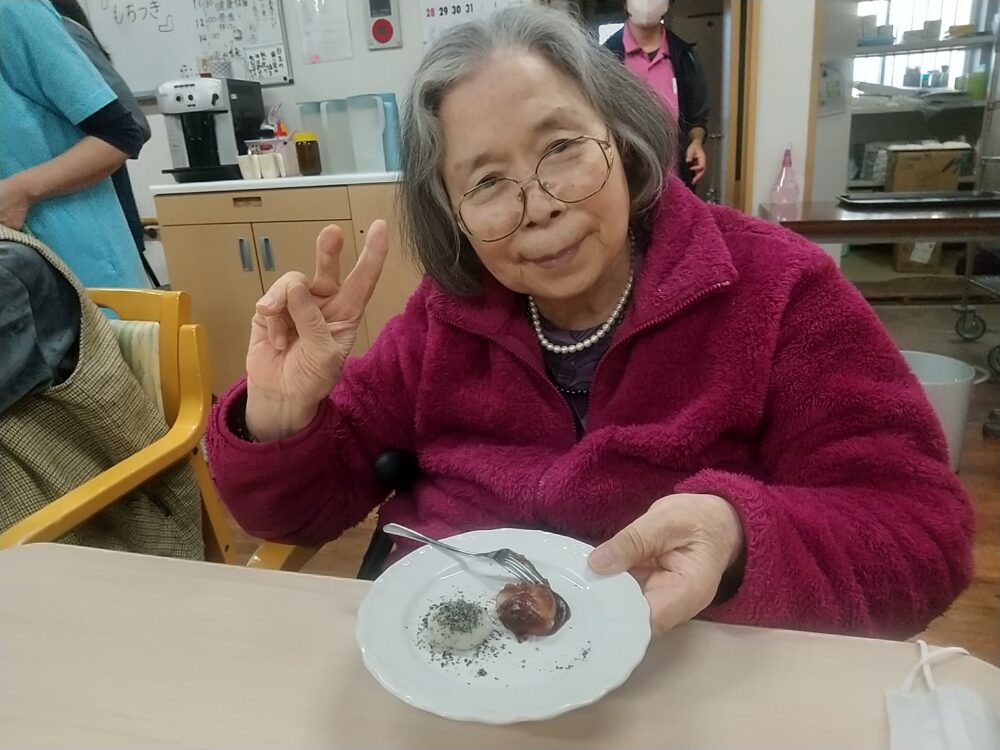 一方その頃、厨房では餅つき機でついたお餅であんころ餅、胡麻餅の準備を♥